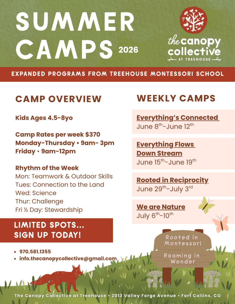 Treehouse Montessori School is evolving into The Canopy Collective at Treehouse and Roots & Roam a reimagined, nature-rooted expansion of our long-standing Montessori community.